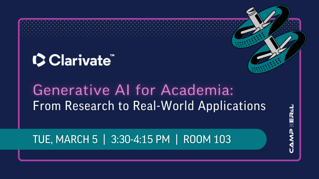 Just over a year ago, the release of ChatGPT initiated the rise of generative AI and Large Language Models (LLM). This has brought about unparalleled advancements but also challenges across all sectors, including academia. In this session, we review Clarivate’s journey from researching and testing generative AI in our innovation lab to launching the first product beta programs, featuring a range of capabilities – from conversational discovery capabilities to automatic metadata enrichment.