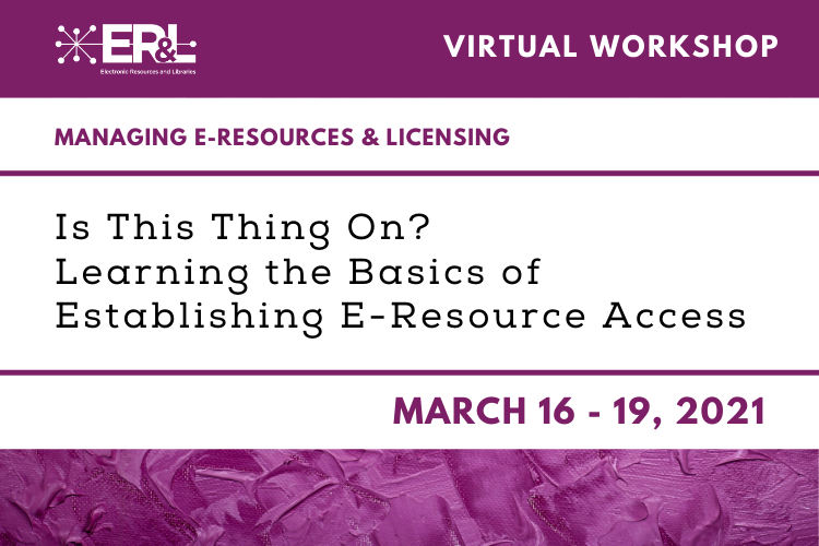 Taking over E-Resources management? Broadening your skills for a job search? This workshop is designed to show attendees the basic components of establishing access to e-resources, from acquisitions to authentication, including payment, acquisition models, management and discovery systems, user interfaces, publisher platforms, linking, and all the various vendors and consortia which might play a role. The presenters will help you analyze and understand the systems and resources in place at your own library, and connect you with resources to understand them better after you’ve returned from Austin. The workshop is intended to be followed up with a conference session on troubleshooting e-resources access problems, giving attendees the skills to identify, resolve, and track a variety of electronic resource access issues, from simple to complex, once they understand how that access should be functioning.